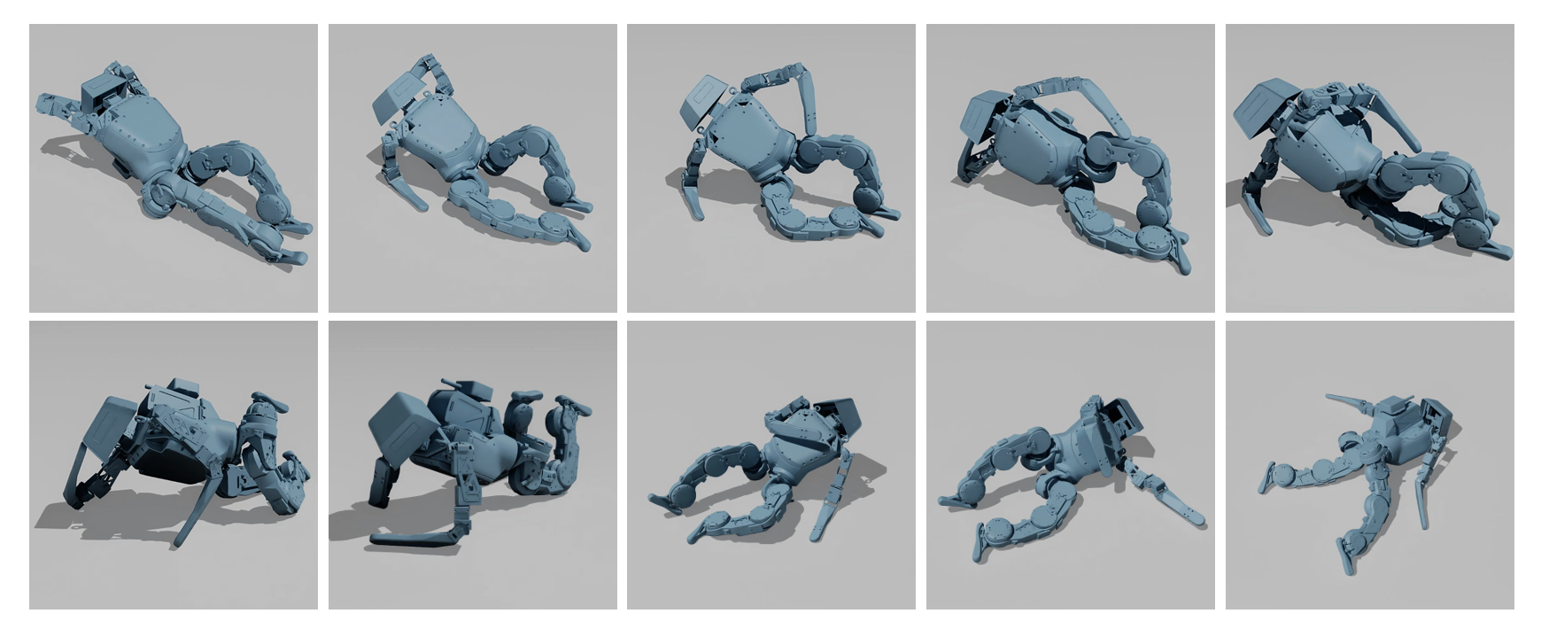 The method is based on reinforcement learning. It uses a reward system that teaches robots to fall safely and land in a specific pose configured by the user. During training, the robot is scored for softer impacts, better protection of important parts, and how closely it matches the target pose. The system starts by focusing on reducing damage, then shifts toward achieving the final position, which can be functional or visually expressive. Users can set which parts, such as the head or battery, should be better protected.