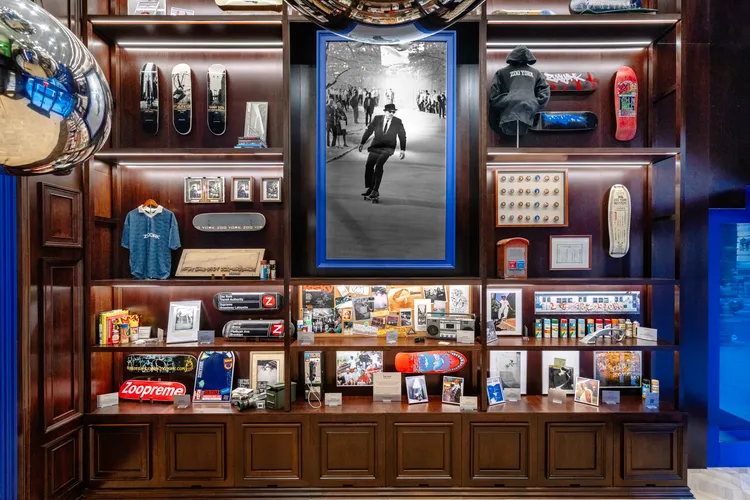- Visitors can explore a curated tribute to NYC skate history, a Buddies Coffee bar, and artwork by Zered Bassett.